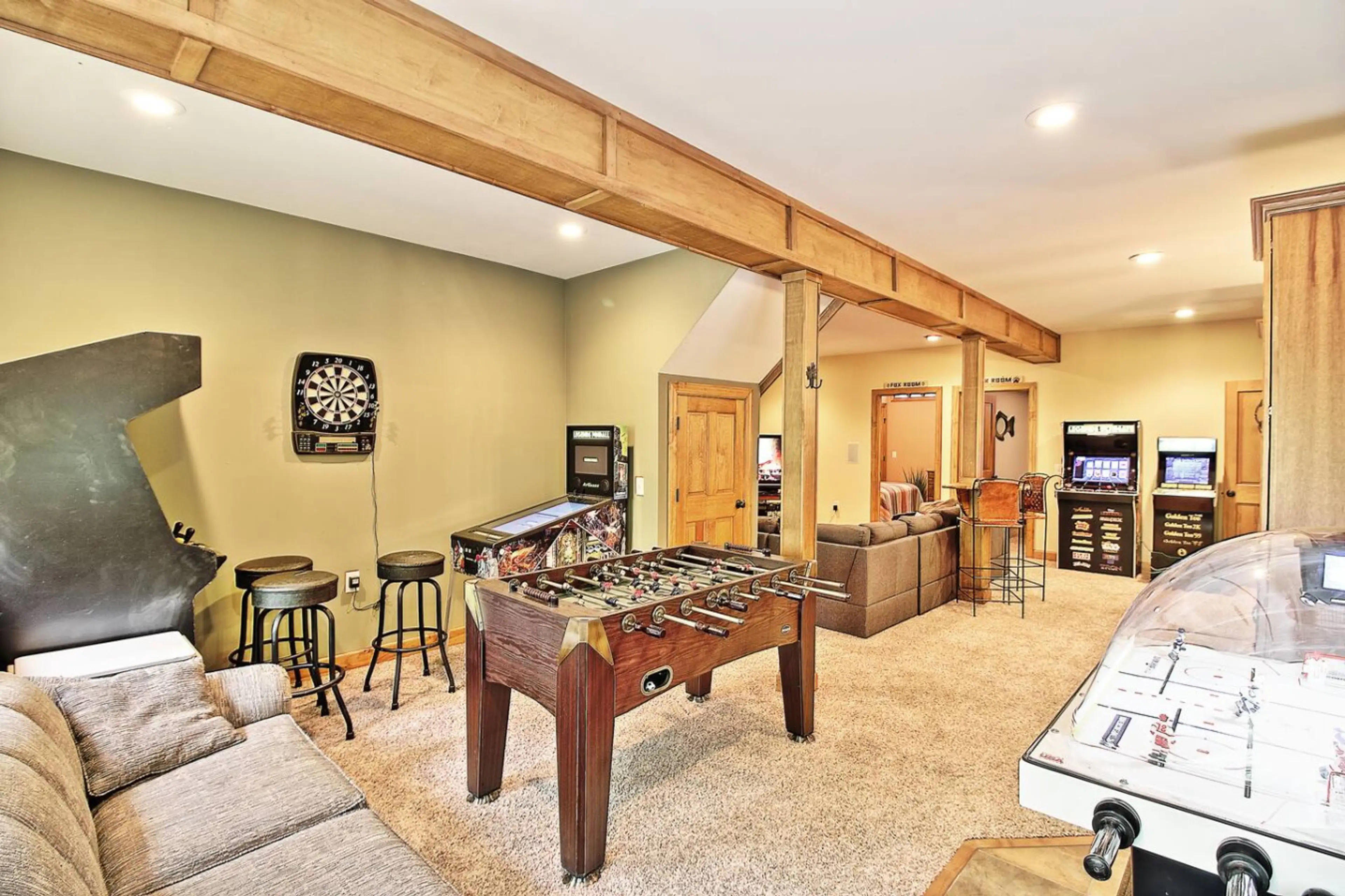 Welcome to the Hidden Gem! This gorgeous unique 2938 sqft chalet sits on a peaceful wooded 2 acre lot located within 2 miles from the village & minutes from Ellicottville's outdoor activities. Relax by the fire, hot tub, or game room. Our themed bedrooms will make your stay memorable! Beds: 2 King...